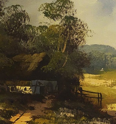 葉の一枚、木の一片、地面の塗りに筆のあとを感じないだろうか。